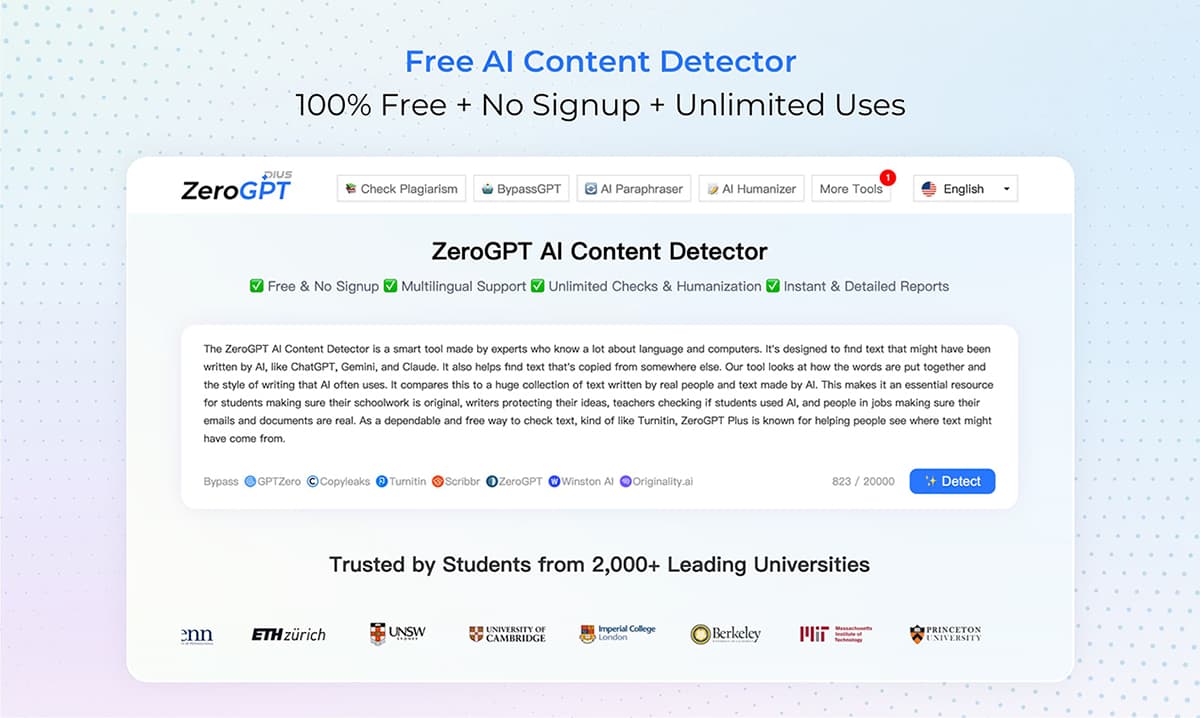 ZeroGPT es una herramienta en línea diseñada principalmente para detectar si un texto ha sido escrito por una inteligencia artificial (como ChatGPT) o por un humano. Además de su función principal de detección, también ofrece capacidades para reescribir textos, lo que la convierte en una herramienta útil para escritores, estudiantes y profesionales que buscan mejorar la calidad de sus escritos.